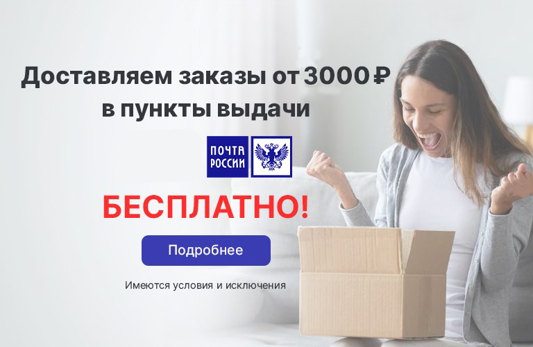 - Бесплатная доставка. В крупные города доставляем за свой счёт. Курьером бесплатно доставляем заказы по городам Иваново и Кохма (при заказе от 1500 руб.), а также до транспортной компании при доставке в другие регионы. Мы отправляем товары на следующий день после оплаты, реже – в течении 2-х рабочих дней.