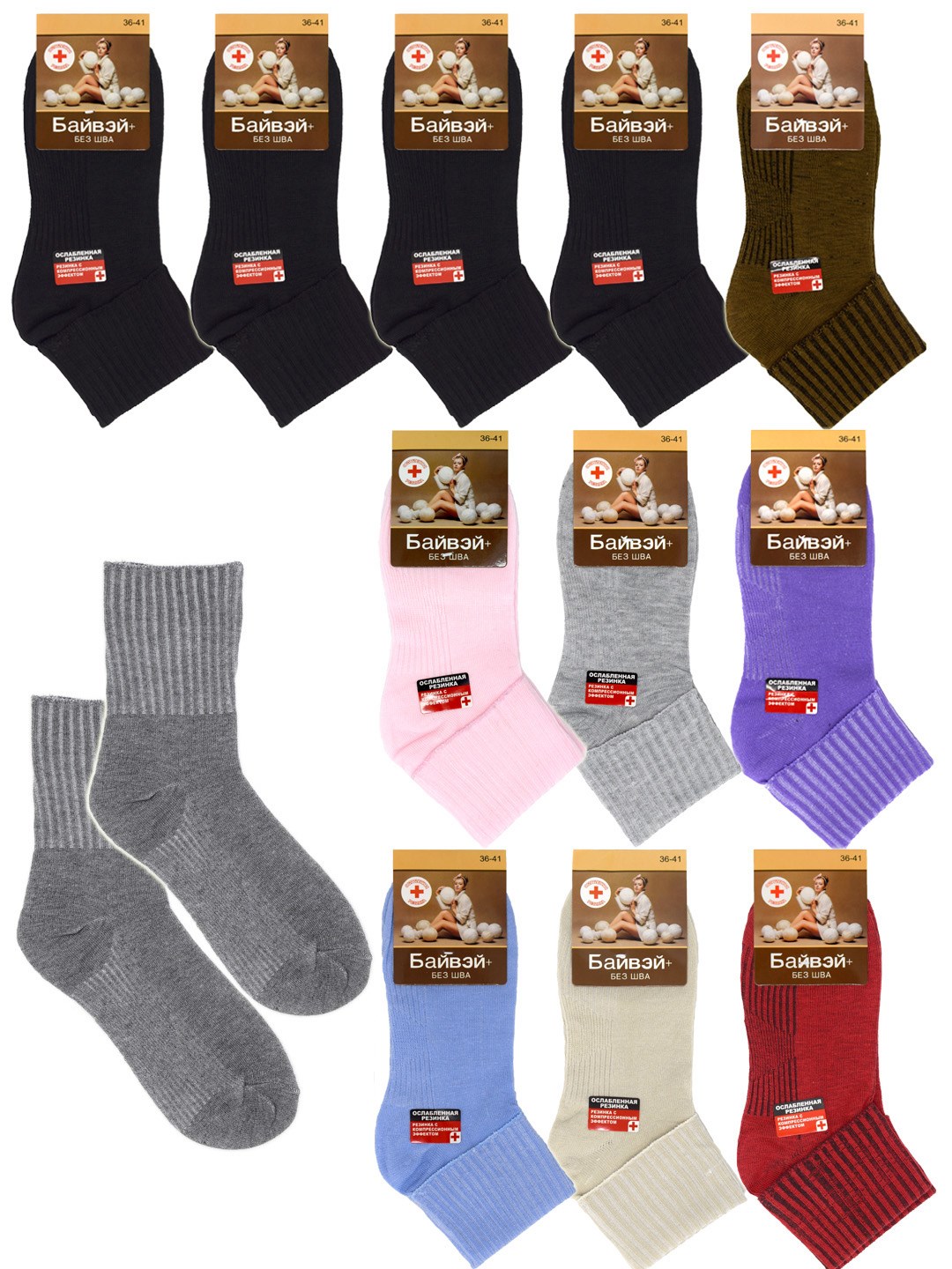 6024-5 Носки женские БАЙВЭЙ, медицинские, хлопок, ослабленная резинка