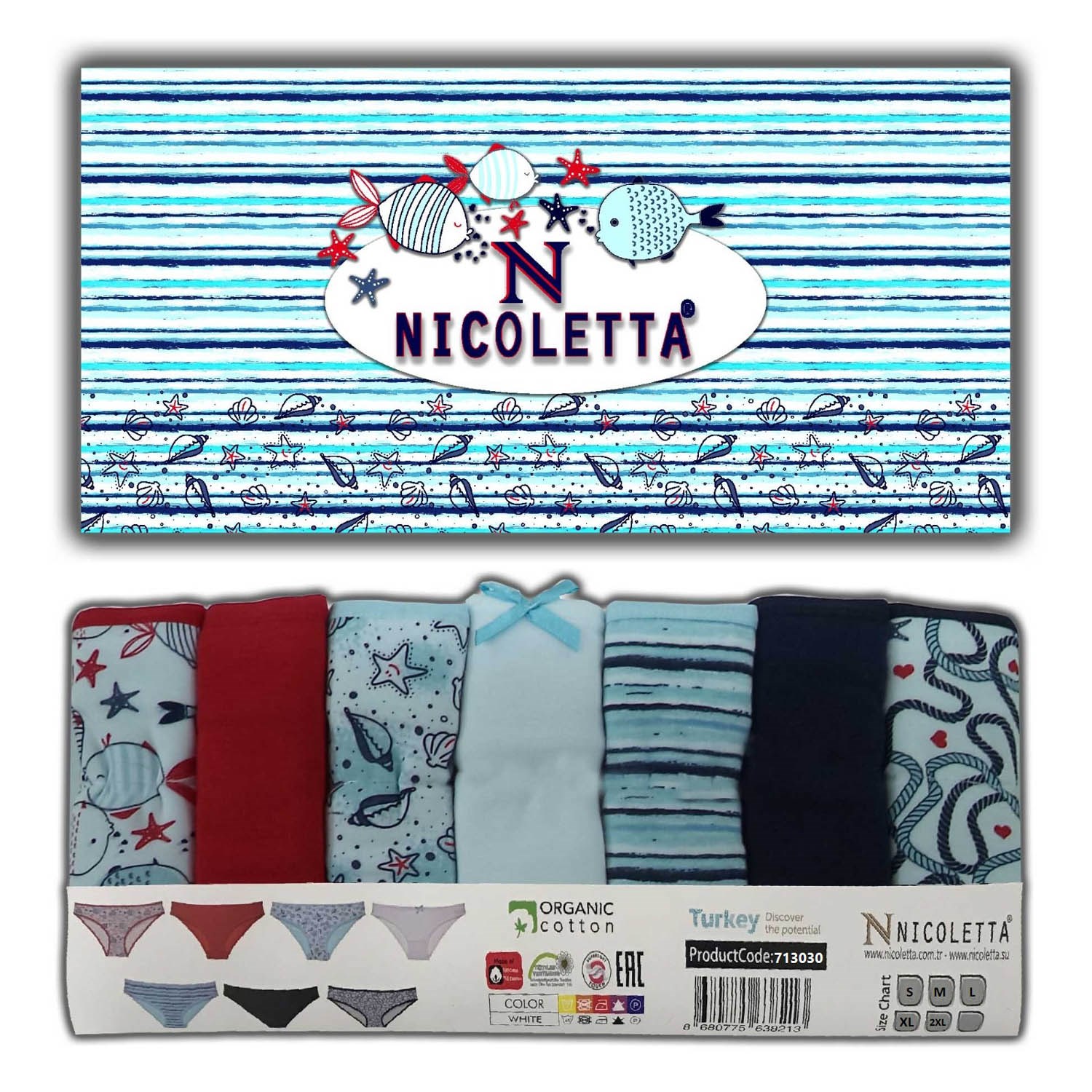 713030 Набор женских трусов NICOLETTA, слипы, хлопок, с рисунком, неделька