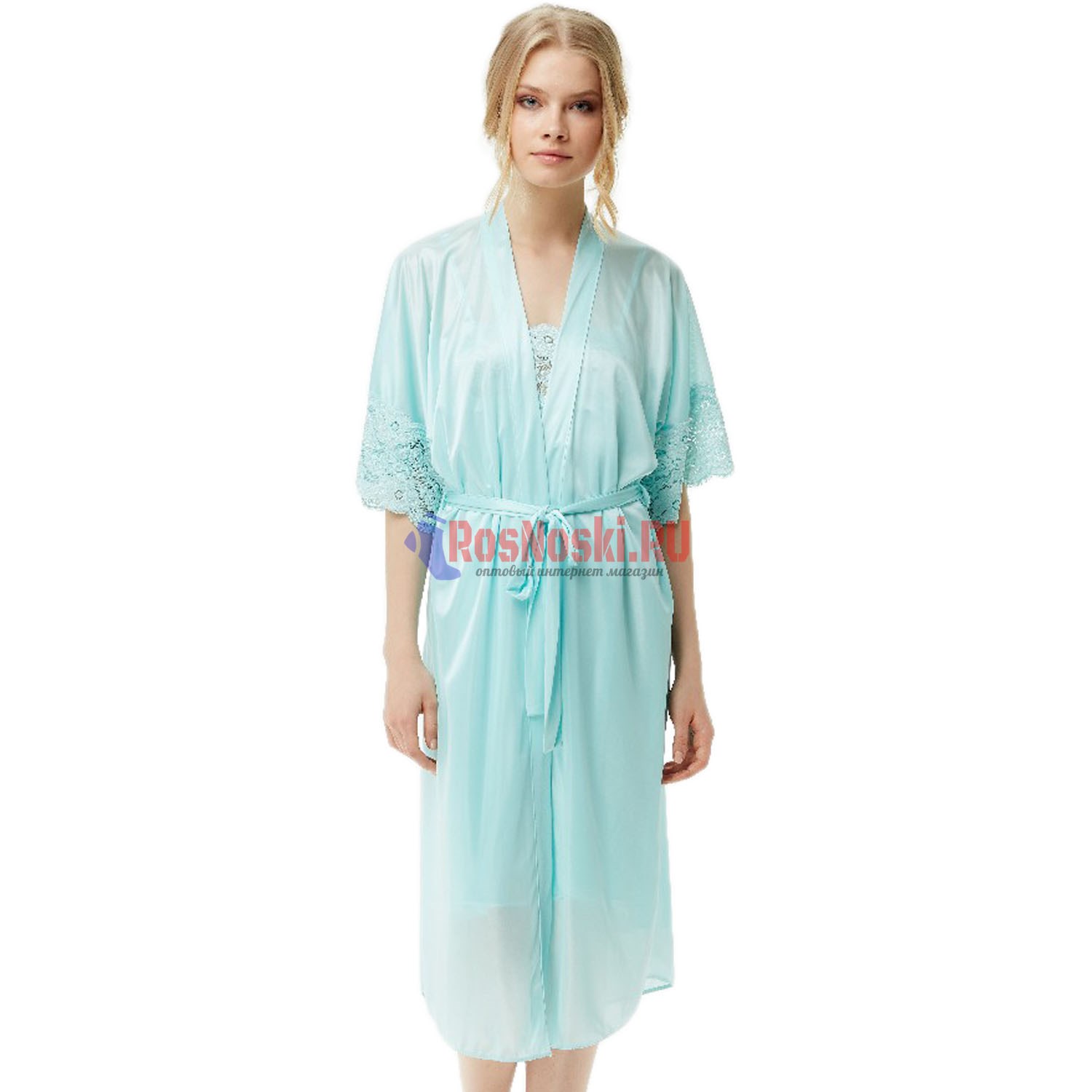 8603 Халат женский MARBIN LINGERIE, кружево на рукаве, ниже колена