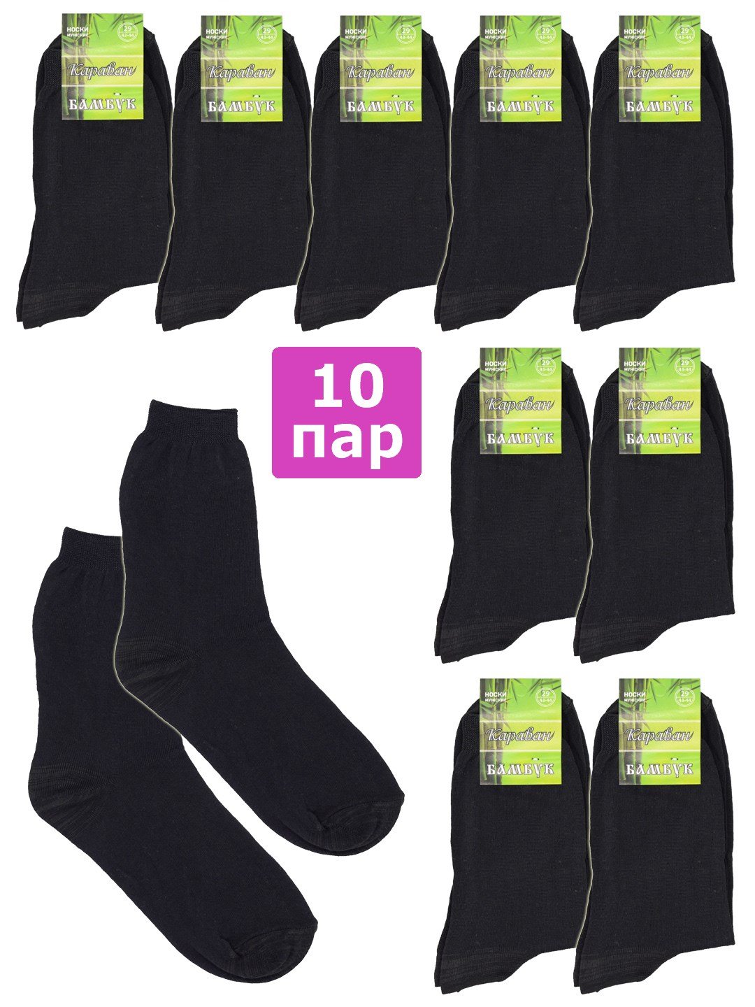 Мужские дешевые бамбуковые носки эконом-класса "СARAVAN" (Караван). Вяжутся из бамбука в сочетании с полиамидом, которые в свою очередь придают изделию прочность и эластичность. Мысок и пятка дополнительно усилены. Комплект недорогих однотонных летних носков отлично подойдёт для ежедневной носки. Выбор тех, кто ищет носки из бамбука по низким ценам. Оптимальное соотношение цены и качества. Произведены в России на импортном оборудовании. Отличный вариант мужских носков на каждый день!