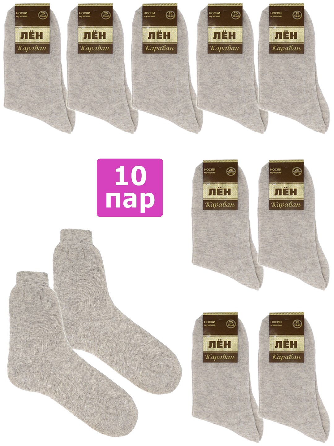 Мужские дешёвые льняные носки эконом-класса "СARAVAN" (Караван). Комплект однотонных летних носков классической формы, отлично подойдут для ежедневной носки. Выбор тех, кто ищет носки из льна по низкой цене. Оптимальное соотношение цены и качества. Имеют тонкий шов, пятка и мысок усилены. Носки обладают антисептическим, антигрибковым действием, снижают потливость. Лён не вызывает аллергии, задерживает развитие бактерий. Льняная пряжа почти в 2 раза крепче хлопчатобумажной и в 3 раза крепче шерстяной. Произведены в России на импортном оборудовании.