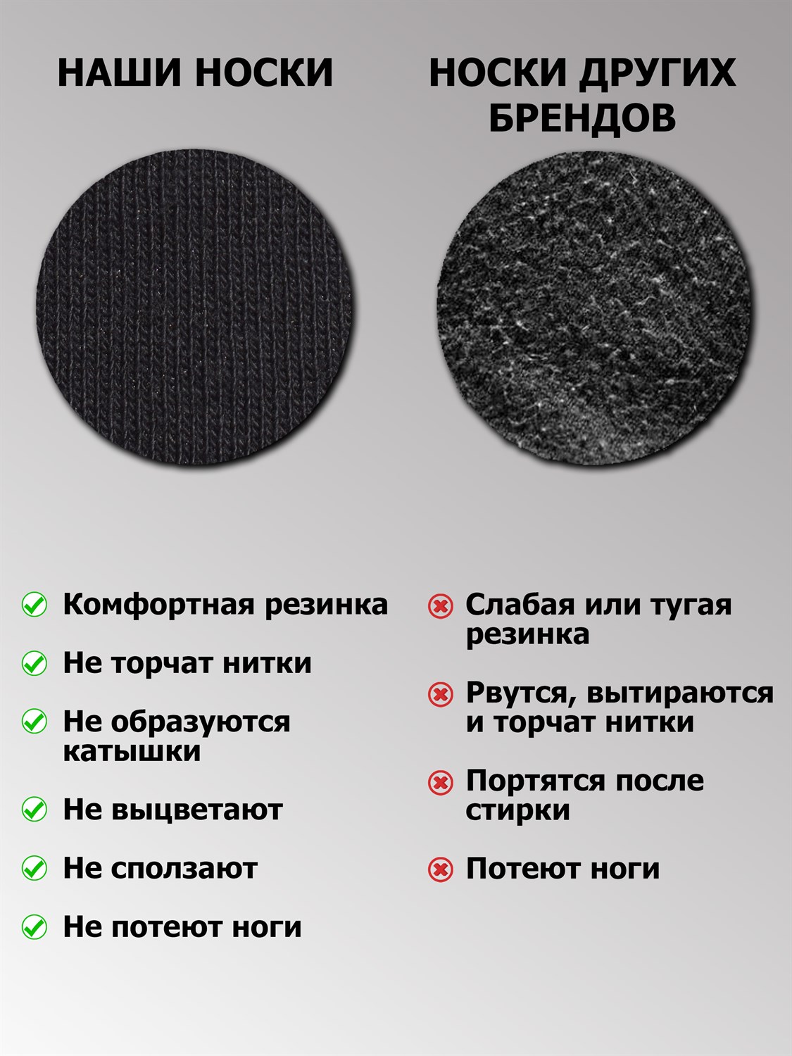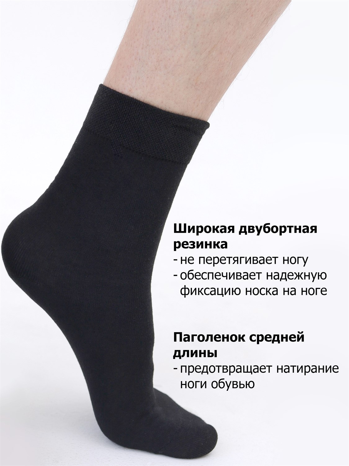 Носки с противогрибковым эффектом. Усиление пятки и мыска двойной нитью повышают износостойкость. Применение эластичных нитей равномерно распределяет давление по ноге. Тонкий шов.