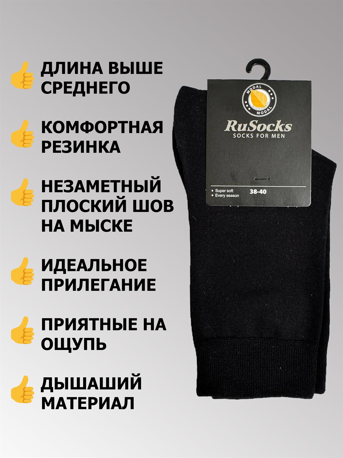 М 370/2 Носки мужские RUSOCKS, модал, высокие, гладкие, однотонные