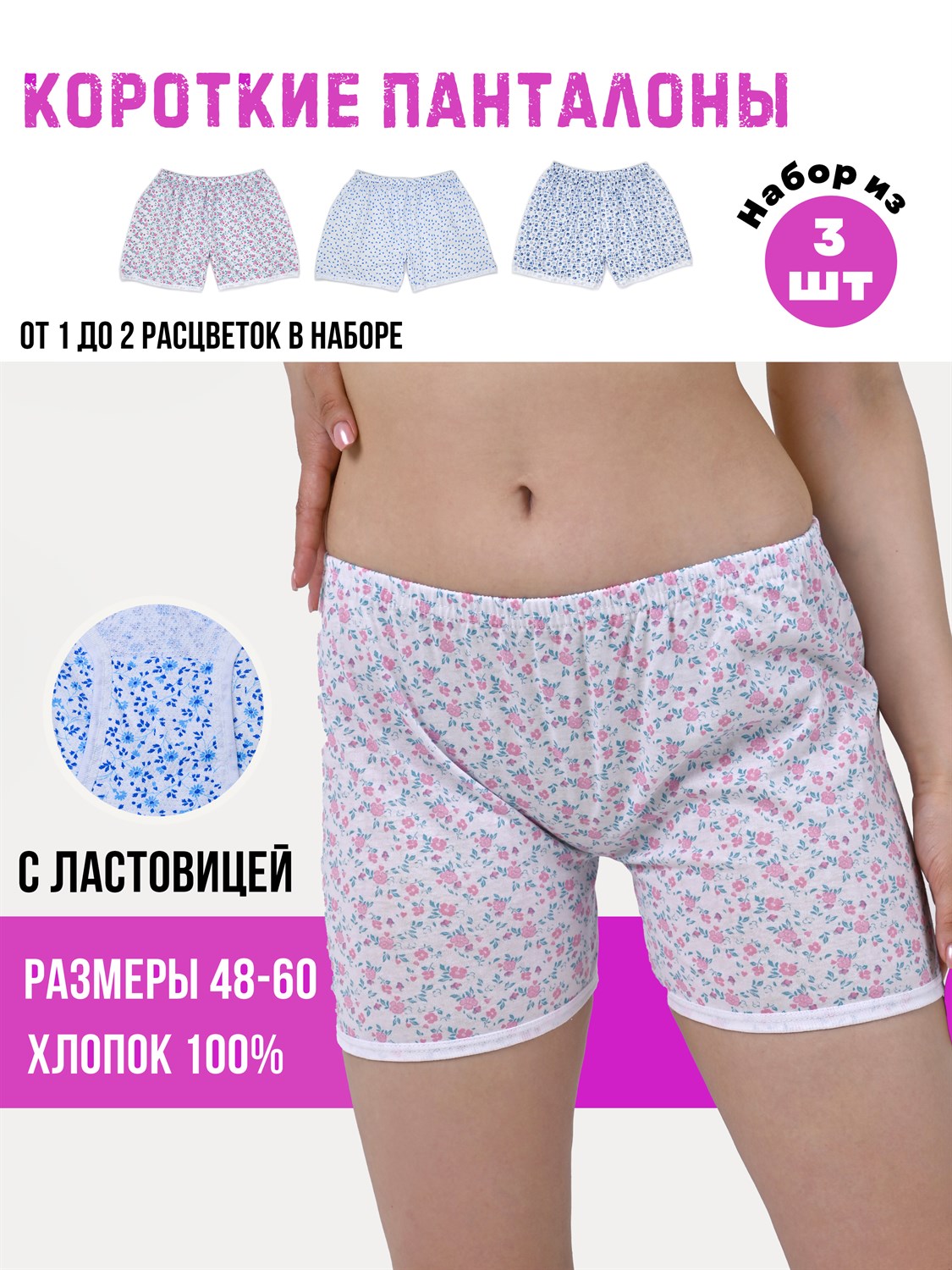 Панталоны женские АМТЕКС, хлопок (хб - 100%), короткие, в цветочек