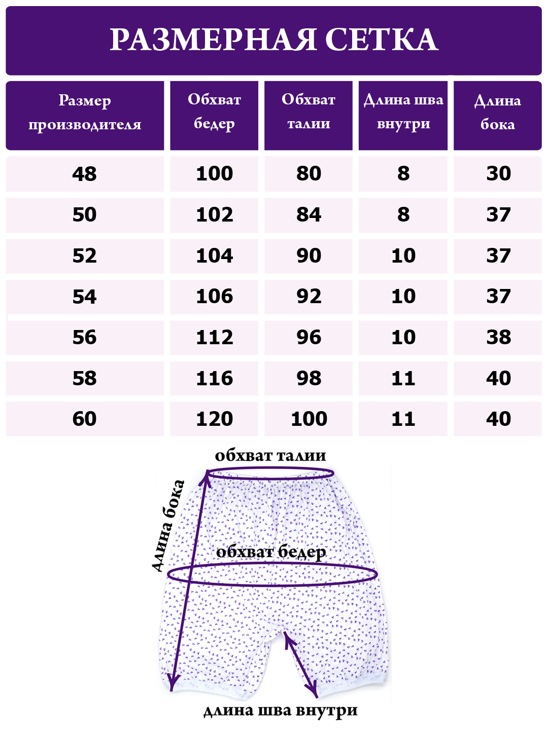 В нашем магазине вы можете купить хлопковые панталоны женские для бабушки и подарить своим родным возможность ощущать комфорт в самых деликатных ситуациях. В каталоге представлена стандартная размерная сетка и подробное описание продукта. Традиционный белый цвет прекрасно подходит для белья, а натуральный материал не вызовет раздражения даже при длительном ношении.
