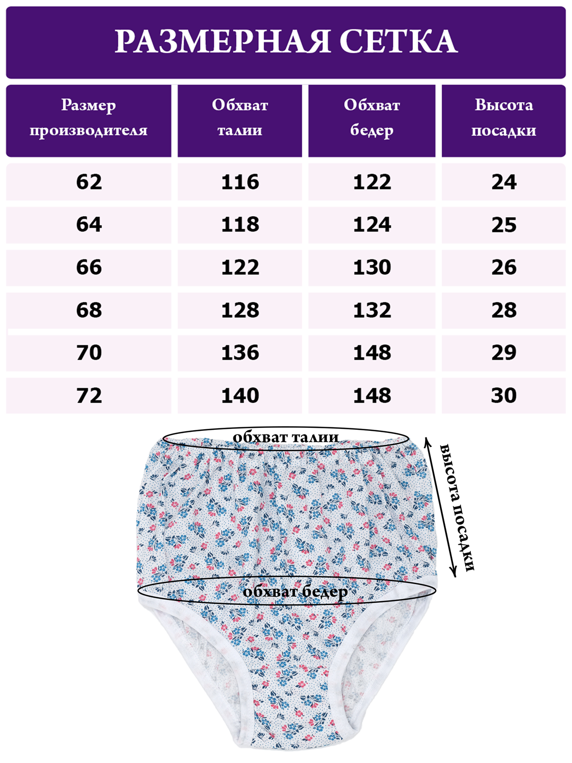 Трусы женские АМТЕКС, хлопок (хб - 100%), кулирка, в цветочек, великан