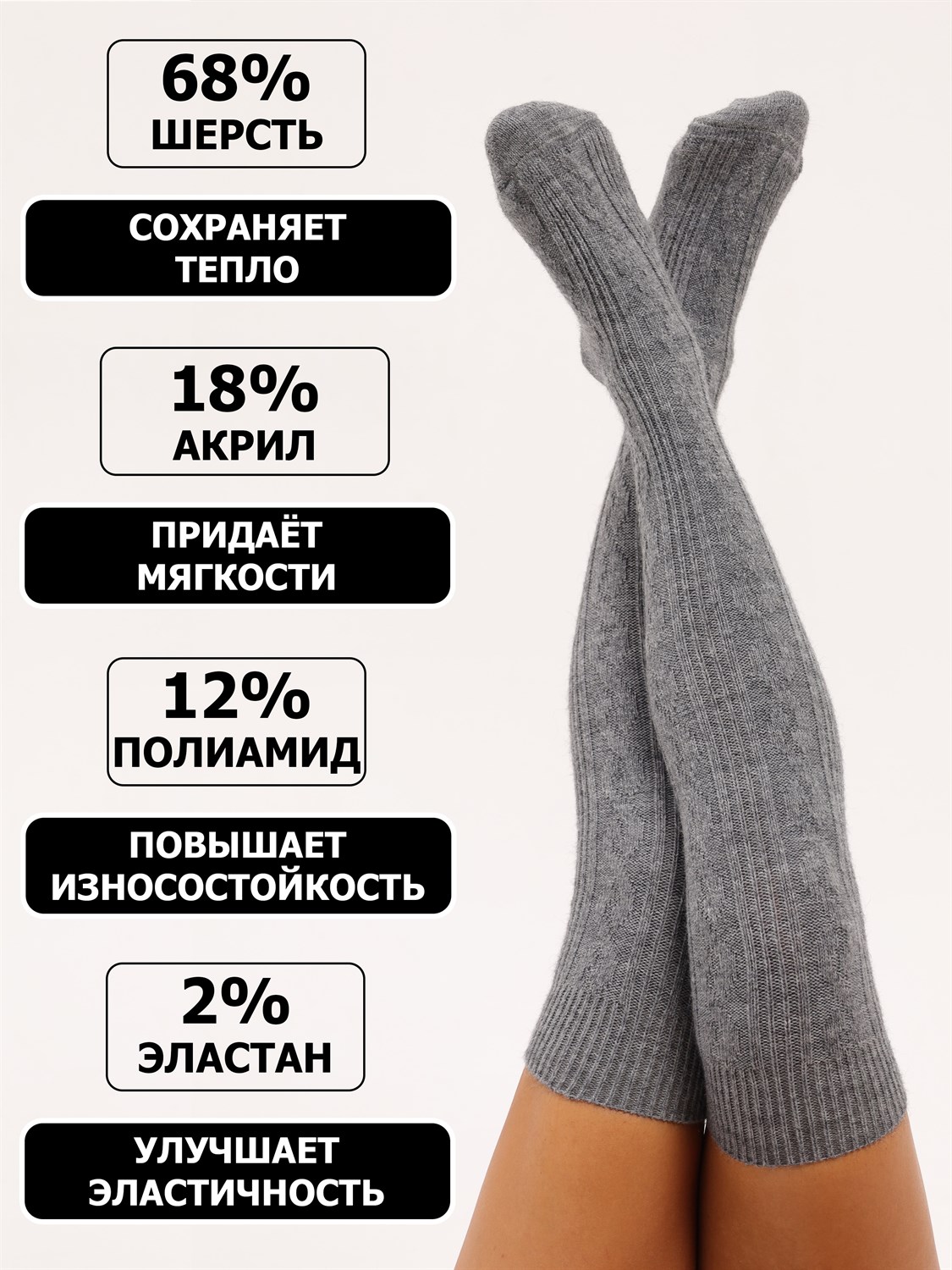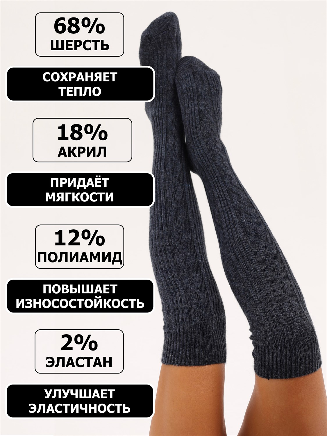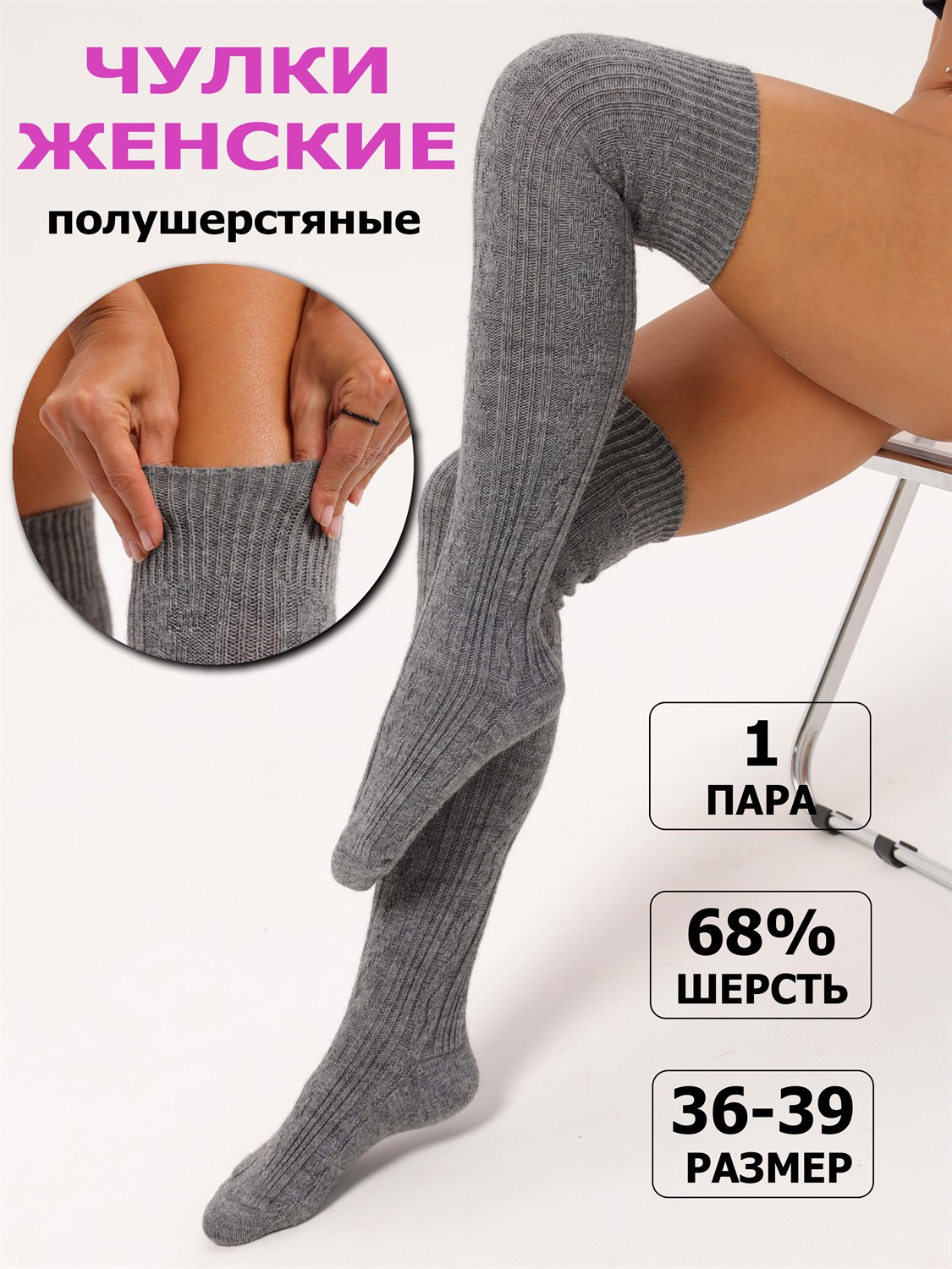 Женские полушерстяные чулки от российского производителя. Такие изделия обладают износостойкими качествами и отличными теплозащитными свойствами.